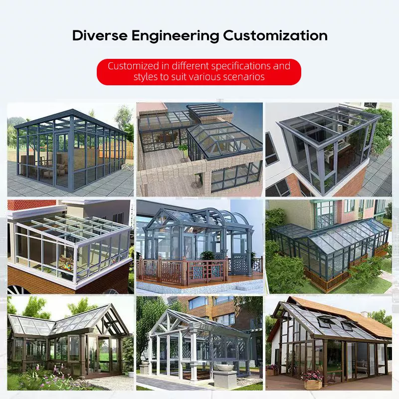 Tùy chỉnh linh hoạt: Có thể tùy chỉnh kiểu mái, kích thước, màu sắc, loại kính và phụ kiện